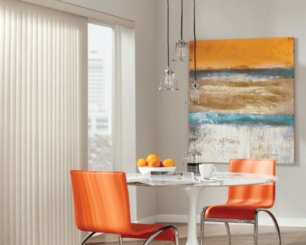 En un hogar, una gran ventana con puertas correderas acristaladas es un tesoro que reclama que se le preste la debida atención. Concédele el protagonismo que se merece con unas modernas e impactantes cortinas de lamas verticales desde el techo al suelo.